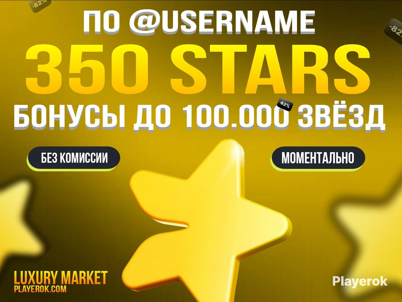 💛 Больше товаров в нашем профиле: https://playerok.com/profile/Luxury-Market/products 🤖 Товар выдаётся автоматически (возможны сбои в системе) 💬 После оплаты товара перейдите в раздел «Чаты» → Выберите чат с «Luxury Market» → Раскройте «Комментарий» 📦 Что входит в товар: [1] - 350 звёзд по @username [2] - Бонусы, скидки и подарки! 📣 Наша система бонусов: 🔸 Третья-пятая покупка — +2-3% от купленных ⭐️ в подарок 🔸 Пятая-десятая покупка — +3-5% от купленных ⭐️ в подарок 🔸 Все последующие покупки — +5-10% от купленных ⭐️ в подарок ⚠️ Условия использования Системы бонусов: https://telegra.ph/Usloviya-ispolzovaniya-Sistemy-Bonusov-01-30 🔐 Как происходит выполнение заказа? 1. Вы оплачиваете товар 2. Отправляете ваш @username в чат 3. Мы отправляем по @username купленное кол-во звёзд 4. Вы проверяете наличие звёзд на аккаунте и подтверждаете получение товара ⚠️ Обязательно к прочтению: ❗️ Оплатив данный товар вы подтверждаете прочтение данного материала ▫️ Данный товар не подлежит возврату после его оплаты ни по каким причинам ▫️ Убедительная просьба проверять корректность указанного @username. В случае, если вы укажете неверный @username при оплате товара, возврат не предусмотрен ▫️ Мы оставляем за собой право игнорировать сообщения, ответы на которые, в той или иной форме, есть в выданном товаре / описании товара
